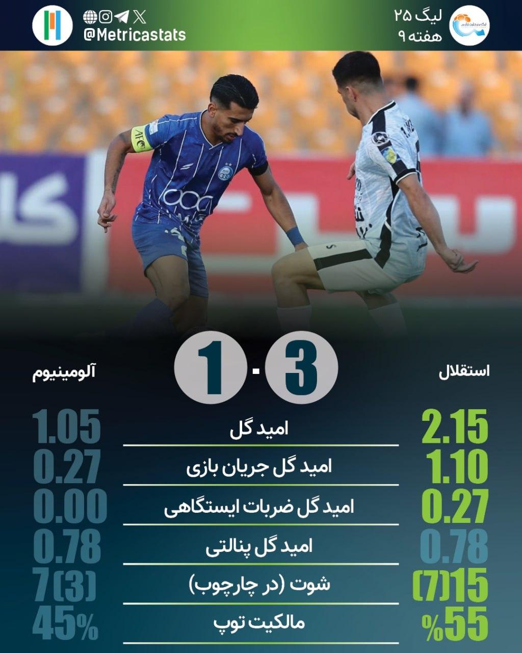 متریکا؛ مرجع آماری فوتبال ایران- استقلال تنها تیمی است که آلومینیوم بیش از 2 بار در لیگ برتر با آن روبه رو شده ولی موفق به پیروزی برابر آن نشده است. استقلال تنها تیمی است که در تمام بازیهای خانگی گل زده است. این تیم با کسب 4 پنالتی، پنالتی گیرترین تیم لیگ است.