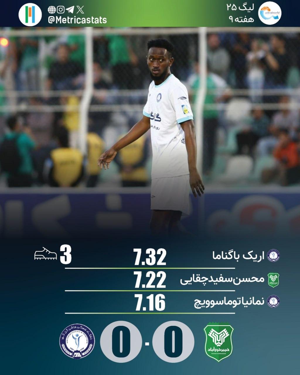 اریک باگناما 3 پاس کلیدی داد و با نمره متریکا 7.32 برای چهارمین بار در چهار فصل اخیر عنوان بهترین بازیکن زمین را کسب کرد.