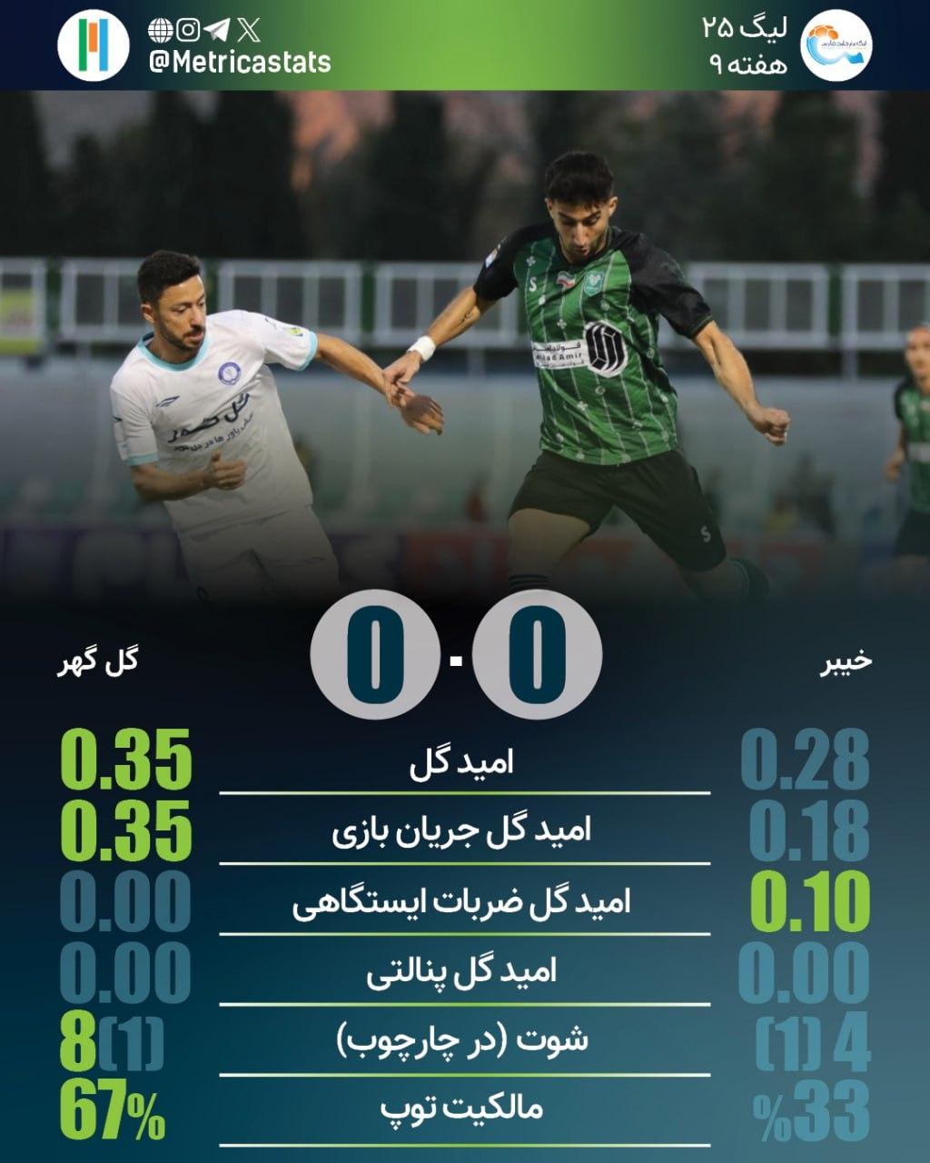 متریکا؛ مرجع آماری فوتبال ایران- گل گهر تنها تیمی است که خیبر 3 بار با آن در لیگ برتر تقابل داشته ولی هیچ وقت موفق به گلزنی برابر آن نشده است. خیبر پس از 6 بازی موفق به بسته نگه داشتن دروازه اش شد. خیبر از زمان صعود به لیگ برتر 3 تساوی بدون گل خانگی داشته که 2 تساوی برابر گل گهر بوده است.