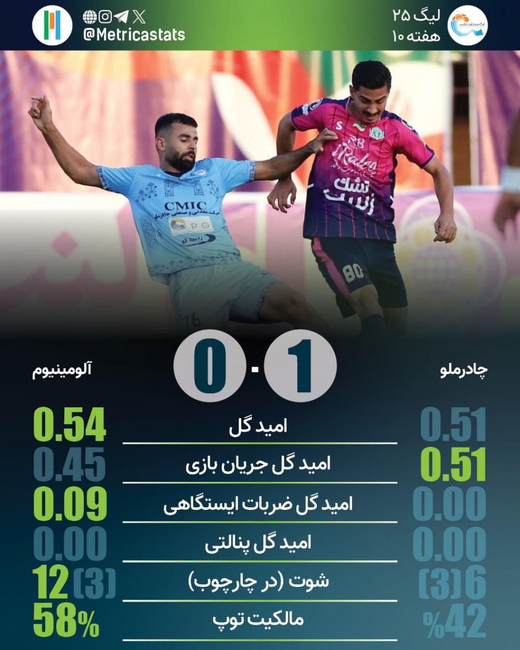 متریکا؛ مرجع آماری فوتبال ایران- چادرملو برای سومین بازی پیاپی به پیروزی دست یافت. این تیم، بهترین تیم بازیهای خانگی است. آلومینیوم در 3 بازی گذشته گل در جریان بازی نزده است.