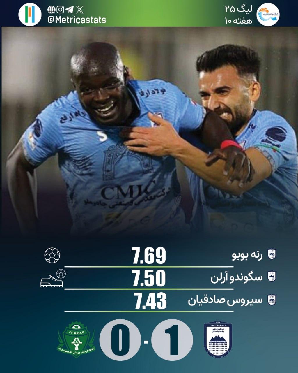 در هر 3 پیروزی پیاپی چادرملو، رنه بوبو موفق به گلزنی شده است. این بازیکن با نمره متریکا 7.69 بهترین بازیکن زمین شد.