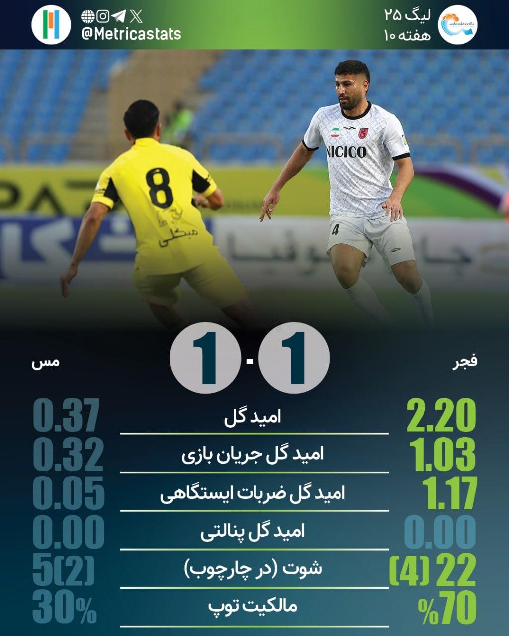 متریکا؛ مرجع آماری فوتبال ایران- این بازی در شرایطی مساوی شد که امیدگل فجر 6 برابر حریف بود. رسول خطیبی تاکنون 5 بار در لیگ و حذفی برابر فجر بازی کرده و هیچ وقت شکست نخورده است. مس رفسنجان در بازیهای خارج از خانه به پیروزی نرسیده است