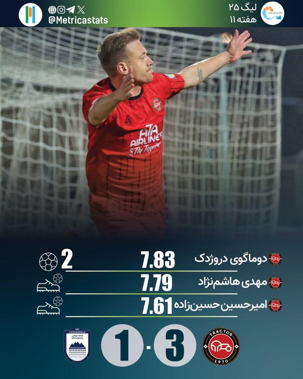 دوماگوی دروژدک برای چهارمین بار موفق به زدن بیش از یک گل در یک بازی شد. این بازیکن با نمره متریکا 7.83 بهترین بازیکن زمین شد.