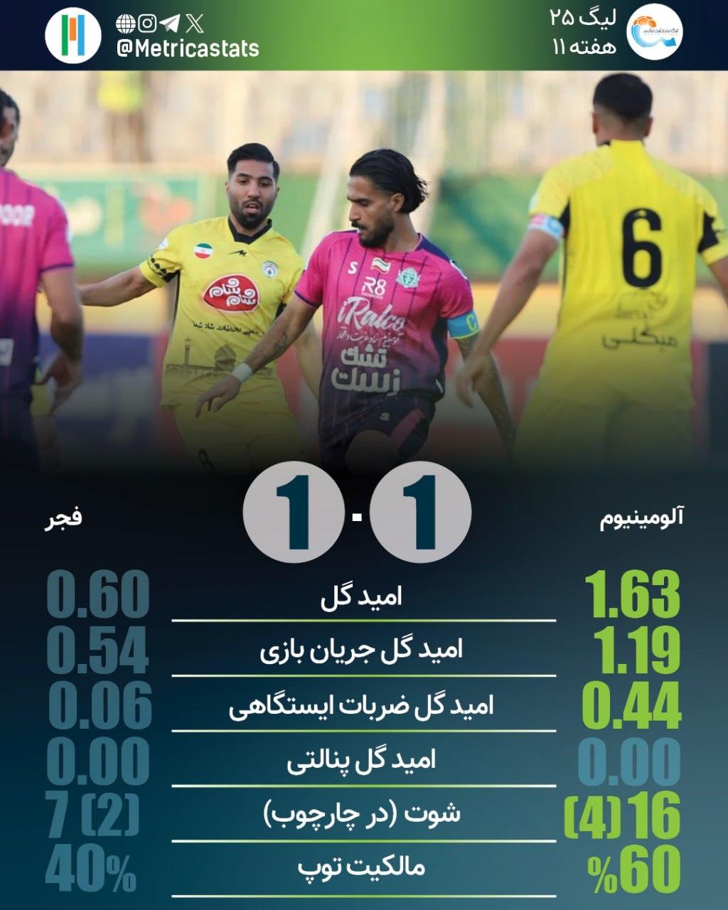 متریکا؛ مرجع آماری فوتبال ایران- فجر سپاسی به سومین تساوی پیاپی دست یافت. آلومینیوم کمترین تساوی را در این فصل دارد.