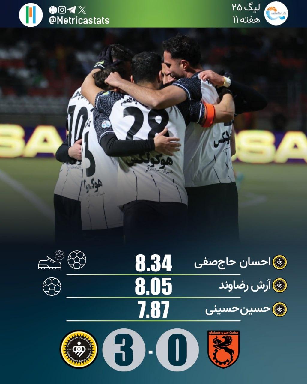 احسان حاج صفی پس از 6 فصل موفق شد که در یک بازی هم گل بزند هم پاس گل دهد. این بازیکن با نمره متریکا 8.34 بهترین بازیکن زمین شد.