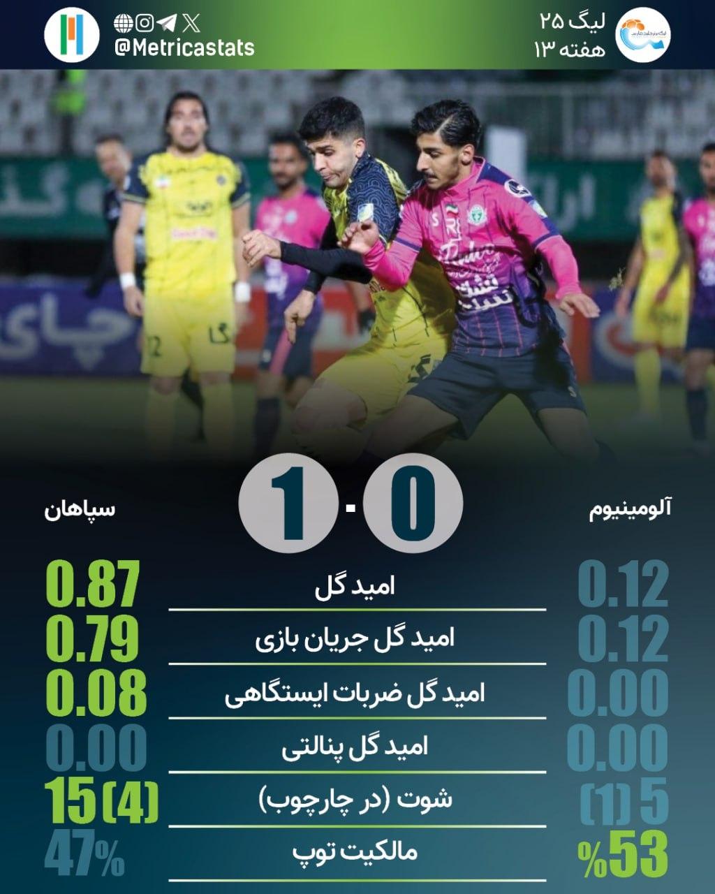 متریکا؛ مرجع آماری فوتبال ایران- سپاهان تنها تیمی است که در این فصل به 6 پیروزی متوالی دست یافته است. تنها سپاهان موفق شده که در تمام دیدارهای خارج از خانه گلزنی کند. سپاهان برای چهارمین بازی متوالی دروازهاش را بسته نگه داشت که طولانیترین روند یک تیم در این فصل است و با این آمار صاحب بهترین خط دفاعی لیگ شد. آلومینیوم اراک 6 بازی است که در کسب پیروزی ناکام مانده است.