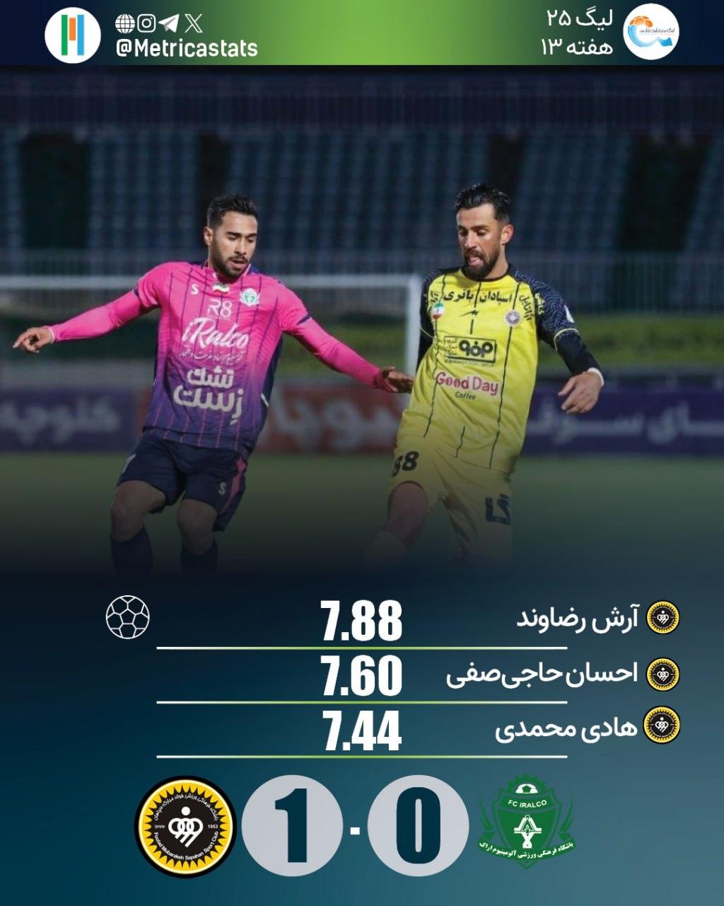 آرش رضاوند با 3 گل به صورت مشترک بهترین گلزن این فصل سپاهان است. این بازیکن با نمره متریکا 7.88 بهترین بازیکن زمین شد.