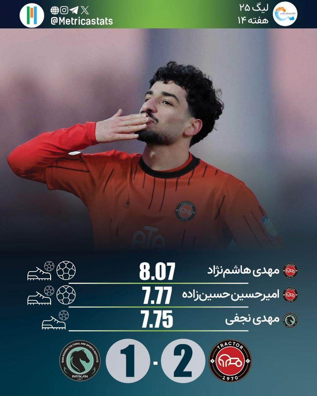 مهدی هاشمنژاد برای اولین بار در دوران بازی در لیگ برتر در یک بازی هم گل زد و هم پاس گل داد تا با نمره متریکا 8.07 بهترین بازیکن زمین شد.