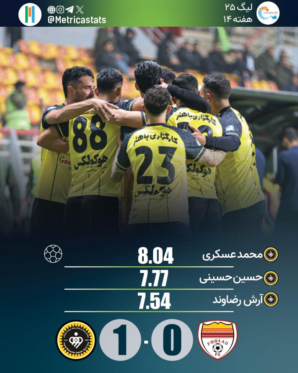 محمد عسگری در 7 بازی اخیر در تمام رقابتها موفق به زدن 6 گل شده است. این بازیکن با نمره متریکا 8.04 بهترین بازیمن زمین شد.