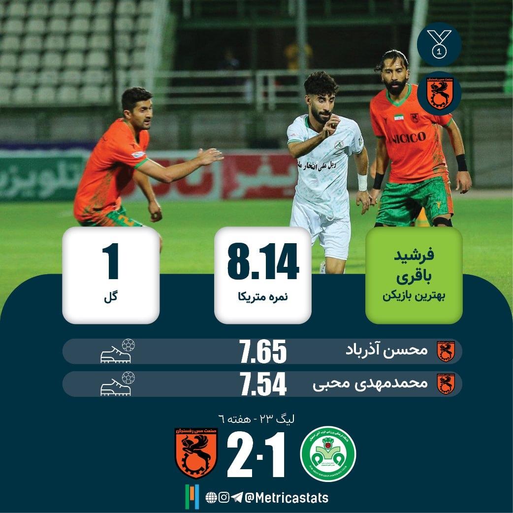 ⭐️ فرشید باقری اولین گل خود را در این فصل به ثمر رساند و با نمره متریکا 8.14 بهترین بازیکن زمین شد.