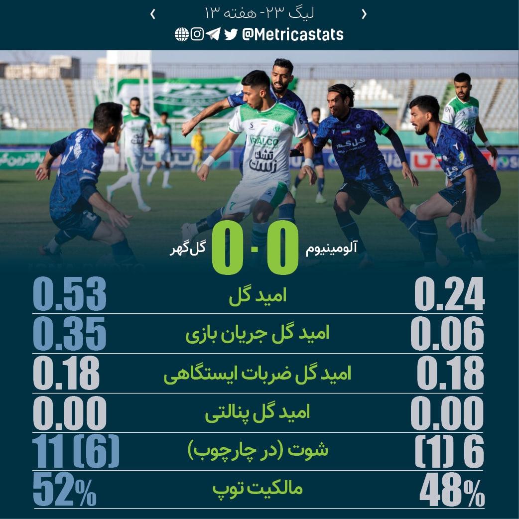 متریکا؛ مرجع آماری فوتبال ایران- آلومینیوم تاکنون در لیگ برتر ۴ بار میزبان گلگهر بوده که هر ۴ بازی با تساوی بدون گل به پایان رسیده است. این سومین تساوی پیاپی خانگی آلومینیوم در این فصل بود.
