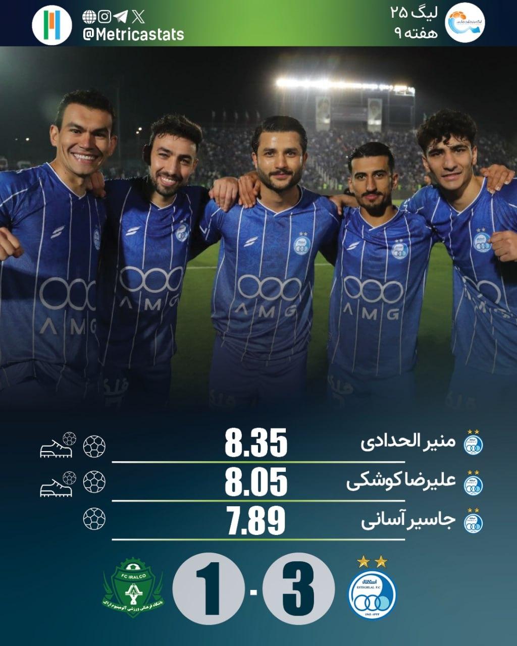 منیر الحدادی برای دومین بار در تمام رقابتها با پیراهن استقلال موفق به زدن یک گل و یک پاس گل در تمام رقابتها شد. این بازیکن با نمره 8.35 بهترین بازیکن زمین شد.