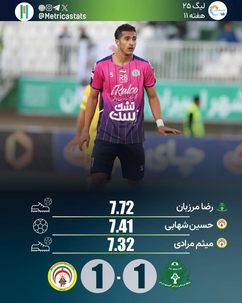 ضا مرزبان برای دومین بار در دوران بازی در لیگ برتر، پاس گل داد و با نمره متریکا 7.72 بهترین بازیکن زمین شد.