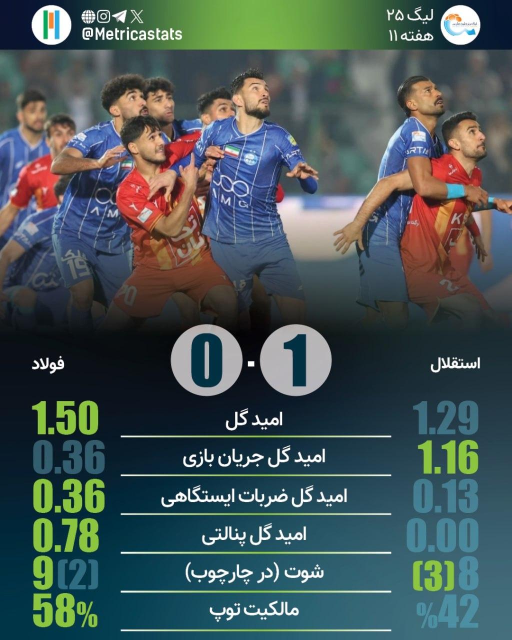 متریکا؛ مرجع آماری فوتبال ایران- استقلال به چهارمین پیروزی پیاپی در لیگ دست یافت. در 6تقابل اخیر استقلال و فولاد تنها یک تیم موفق به گلزنی شده است. فولاد در بازیهای خارج از خانه به پیروزی نرسیده است.