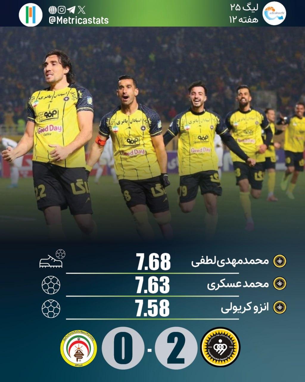 محمدمهدی لطفی اولین پاس گلش را در این فصل داد و برای نخستین بار در این دوره بهترین بازیکن زمین شد. لطفی از متریکا نمره 7.68 گرفت.