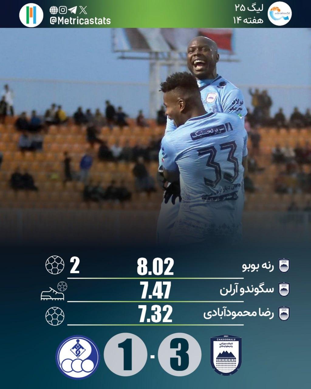 رنه بوبو با 6 گل دومین گلزن برتر چادرملو اردکان در دوران حضور در لیگ برتر است. این بازیکن با نمره متریکا 8.02 بهترین بازیکن زمین شد.