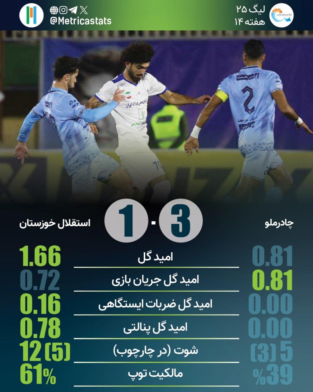 متریکا؛ مرجع آماری فوتبال ایران- چادرملو صدرنشین جدول بازیهای خانگی لیگ است. استقلال خوزستان پس از 60 بازی در لیگ موفق به زدن گل از روی نقطه پنالتی شد. استقلال خوزستان در 5 بازی گذشته یک امتیاز گرفته و یک کلینشیت کرده است.