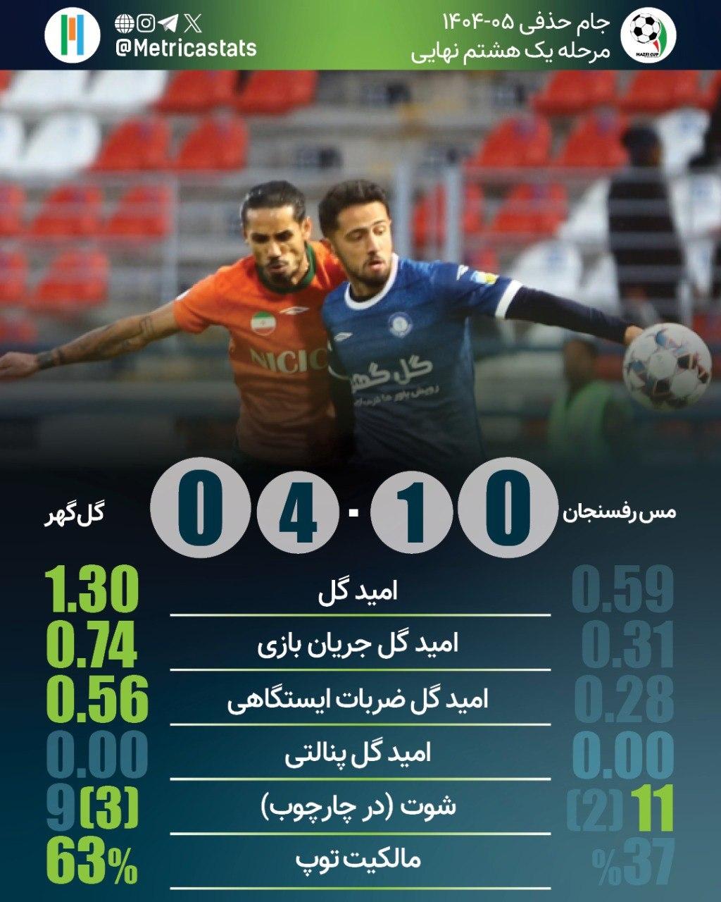 متریکا؛ مرجع آماری فوتبال ایران- از 4 تقابل اخیر گلگهر با مس رفسنجان در لیگ و جام حذفی 3 بازی با تساوی بدون گل به پایان رسیده است. گلگهر بر اساس امیدگل مستحق زدن یک گل بود. گلگهر در 12 تقابل با مس رفسنجان هیچ وقت شکست نخورده است.